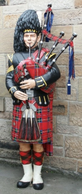 A statue of a Scottish bagpiper in Edinburgh Castle, Edinburgh, Scotland. Taken by Don.