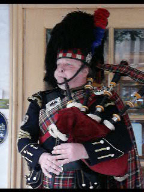 A movie of the bagpiper that welcomed us to a Scottish Celidh, Edinburgh Scotland. Taken by Juanita.